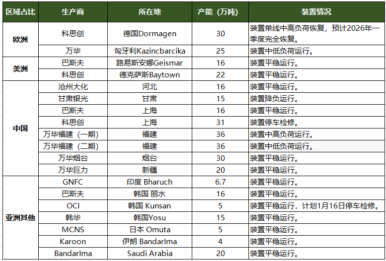 全球主要TDI装置动态汇总